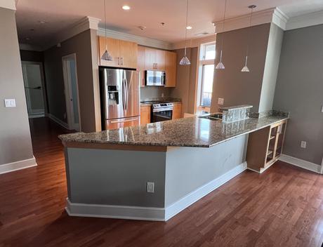 Battery Park condos experienced significant water damage due to a workmanship failure by previous contractors during a painting project. Our clients decided to seize the moment and upgrade their kitchen while the floors were being replaced. The original kitchen layout was impractical and lacked sufficient storage.